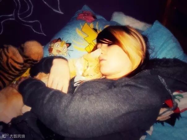 橘猫总喜欢窝在她的肩膀上,和她一起懒洋洋躺在沙发里睡觉。