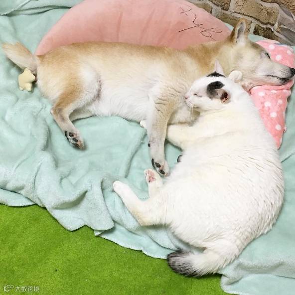 不管是吃饭,还是睡觉,一猫一狗永远在一起。