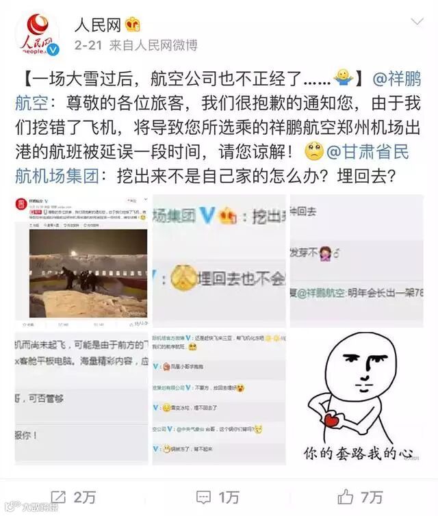 发布了一条雪中挖错了飞机的微博,
