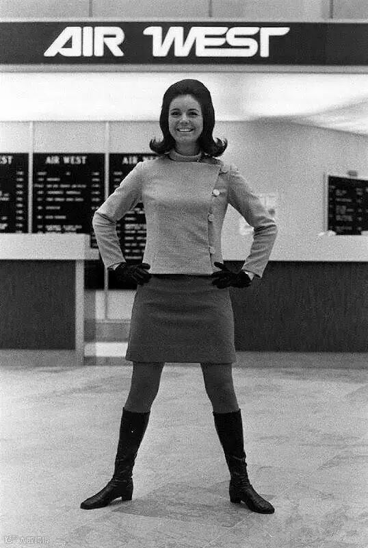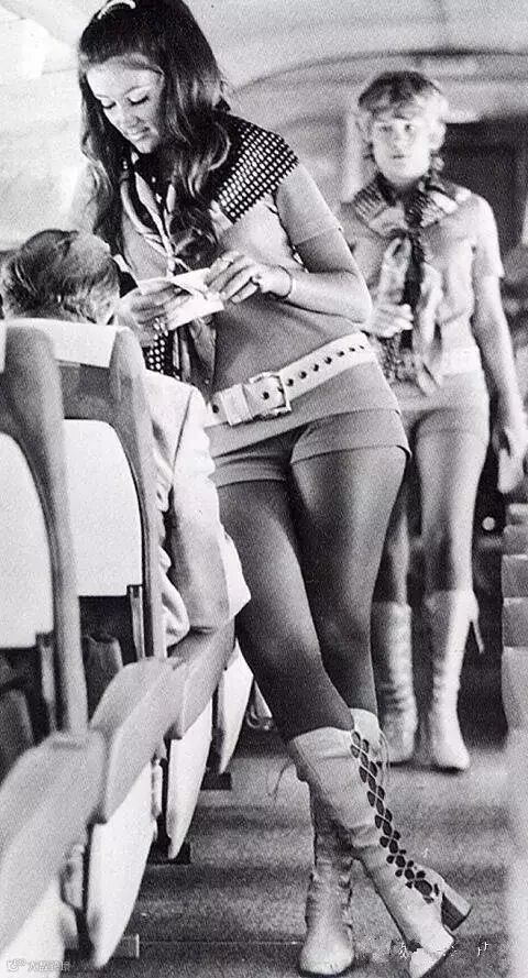 空姐制服开始了由时装设计师度身定制的时代,也在此时,空姐首次脱下了外套,裙子的长度也大大被缩短,改以更轻便的服装和迷你群出现在飞机上。