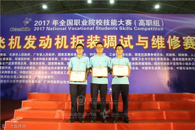 喜讯:四川省代表队(四川西南航空职业学院代表队)在2017年全国职业院校技能大赛高职组“飞机发动机拆装调试与维修”比赛中荣获团体三等奖。