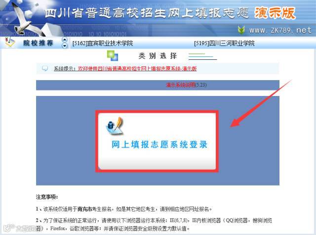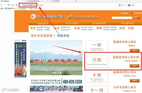 第一步:登陆四川省招生考试信息网http://www.zk789.net/,点击“网报”进入网报系统界面(具体填报高考志愿网址,以各省、市教育考试院公布为准)