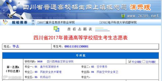 2.填报专业时将面试录取专业作为第一专业志愿填报(例如01直升机驾驶技术)并按回车键,其余专业请按学生就读意愿由高到低依次填写