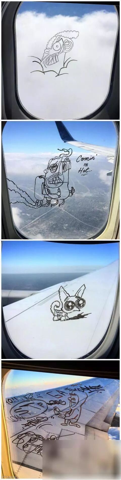 国外有一个小哥,每次坐飞机都会专门选靠窗的位置,因为,他每次坐飞机都会在窗上画点小东西……