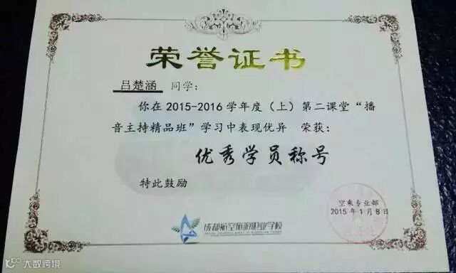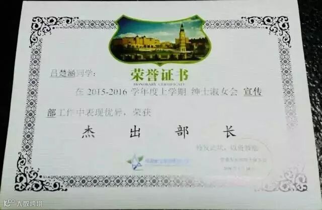 空乘宣传部部长,多次评为优秀部长