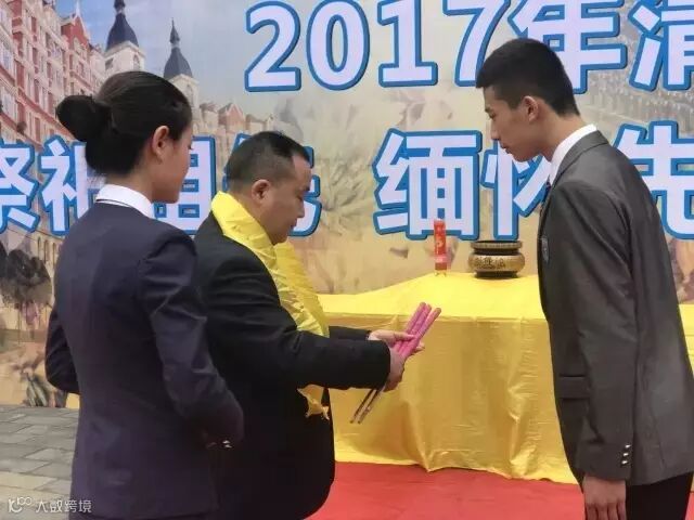 四川泛美教育投资集团副董事长、副总裁刘良慧先生;成都航空旅游职业学校副董事长、校长李玉龙先生;成都航空旅游职业学校董事会董事、副校长陈平先生;成都航空旅游职业学校副校长唐昕女士在各祭祀会场代表全体师生净手上香,全体师生三鞠躬,遥念祖先开辟中华五千年文明之基业。