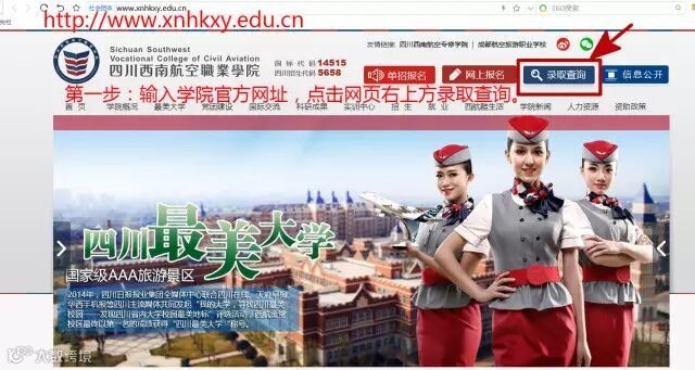 Step 1 :打开学院官方网站(www.xnhkxy.edu.cn)点击录取查询