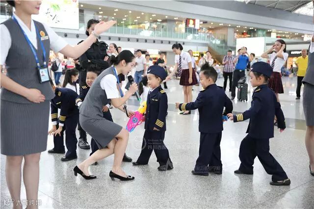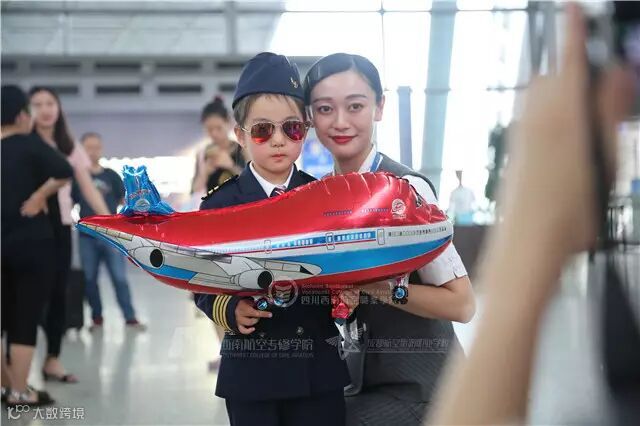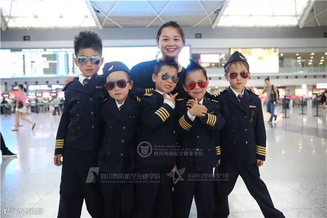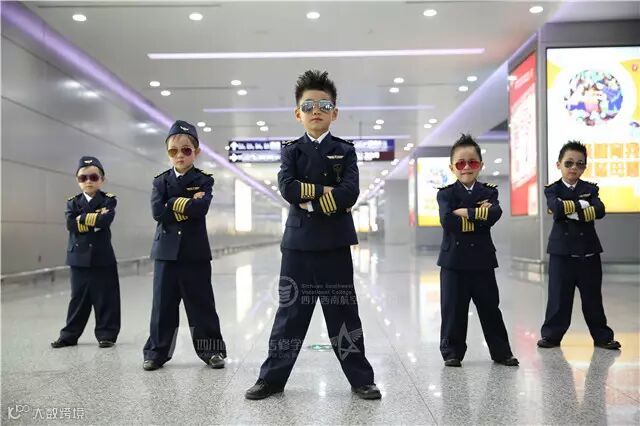 成都双流国际机场熙熙攘攘的候机大厅,因为5名身穿机长服、戴着墨镜的“小机长”突然出现而更加热闹。没错,西航这些英姿飒装的“小机长”就是来搞事情的……