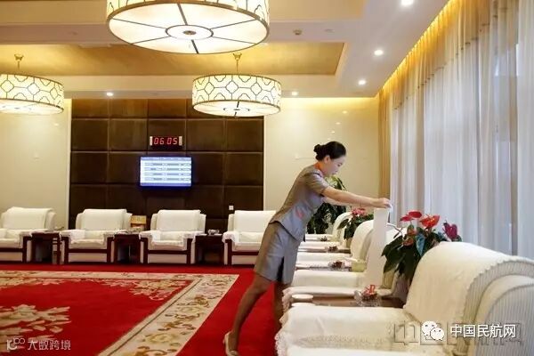根据预订信息,美丽已经提前三十分钟到达休息室准备着服务用品,把室温调到最舒适的温度,电视提前调到到贵宾喜欢的频道……全部整理完后,他在休息室门口保持标准站姿和微笑等待贵宾的到来。