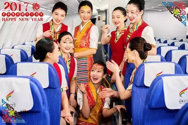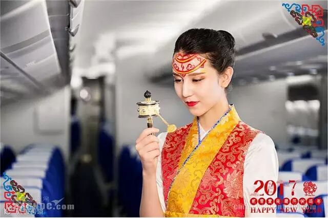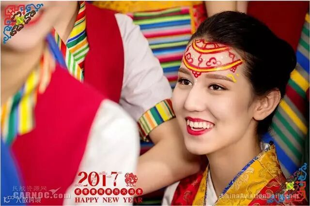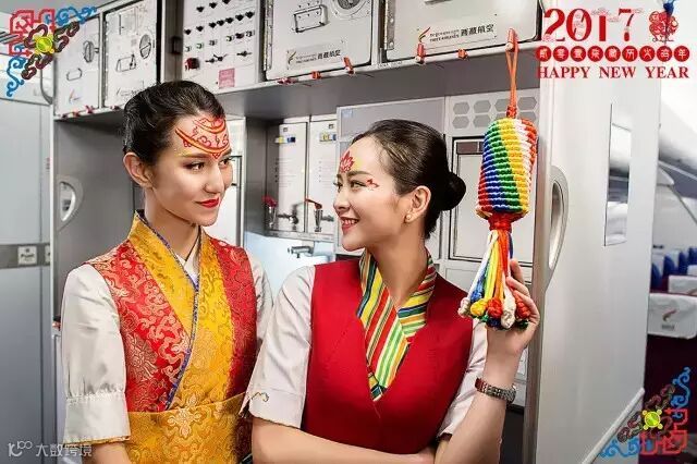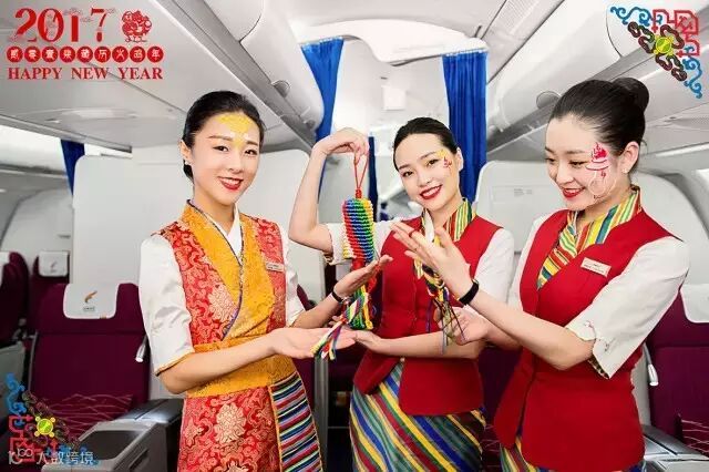 为了表达对藏族人民的祝福,西藏航空尝试将彩绘艺术的流畅笔触与乘务员的美丽脸庞相结合,勾勒出美丽的“吉祥妆面”,祝愿藏族人民:洛萨扎西德勒!