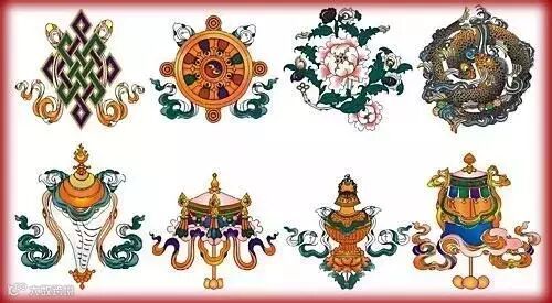 "八吉祥图案"起源于中国和印度,带有浓郁的东方色彩,有祥瑞的象征寓意,又有明确的宗教含义指征。在西藏,人们喜欢用传统的饰品来装点节日氛围。那些象征着吉祥寓意的图案,常常出现在人们的生活中,它们被称为“八吉祥纹样”,也叫作“吉祥八宝”。