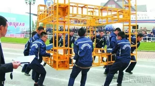 机务学院副院长胥淮对记者说:“12根铁架模拟飞机筐梁,训练学生变换各种角度进行铆接等操作。12根铁架的拆装看似简单,实则难度很大。就拿举架子的同学来说,在拆装过程中,他需配合两侧拆装的同学调整位置。如果他举的角度不够好,那么两侧进行拆装的同学就会很费力、费时。通过这项比赛,学生的配合协调能力得到了很好的锻炼。同时,每一根铁架大约25公斤,一个组装架总重量达到300公斤。通过搬运、组装,也锻炼了大家的体能。”