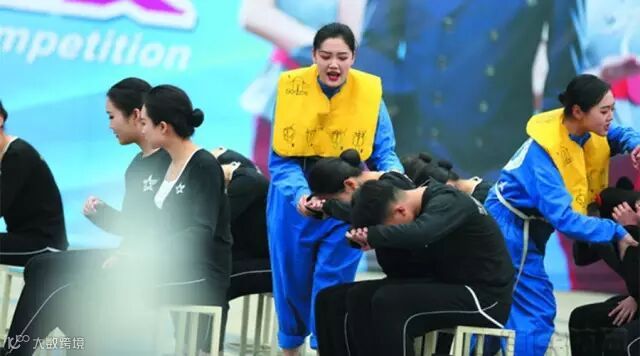 当这一幕发生在客舱乘务员水陆撤离程序演练项目中时,第一时间让人联想到电影《萨利机长》中的情节。二者极其相似,却又有不同。面对突如其来的事件,电影更多关注机长的决策。在此次演练中,客舱则成为主战场。面对客舱中可能出现的各种突发情况——客舱颠簸、旅客尖叫、旅客企图攻击乘务员、旅客受伤……在危急时刻,学生们冷静处置,坚定地履行职责,使更多的学生和老师学到了很多专业知识。