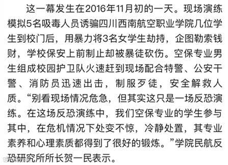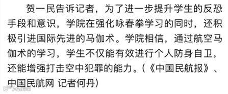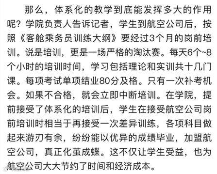 2月15日,微信公众号中国民航网发布微信《严字当头 探秘西南航空学院缔造空中卫士》,从标准化教学、内涵建设、专业性质三方面入手,详细解读了四川西南航空职业学院教育教学体系。