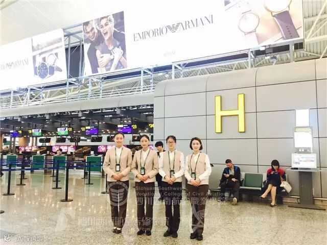 就职于广州白云国际机场国际值机岗位的西航学子:王莉娟、蒲娃草、刘丹、刘思鸿