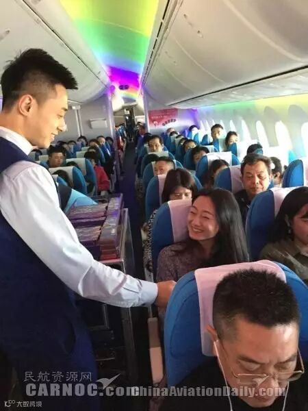 10万盒共50万粒巧克力,厦航乘务人员将每一盒全新定制的巧克力礼盒送到旅客手里。