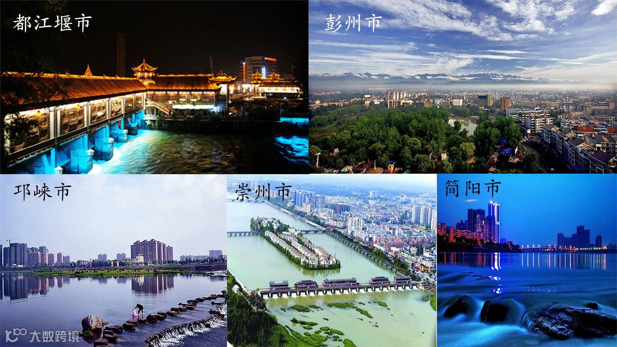 都江堰市、彭州市、邛崃市、崇州市、简阳市