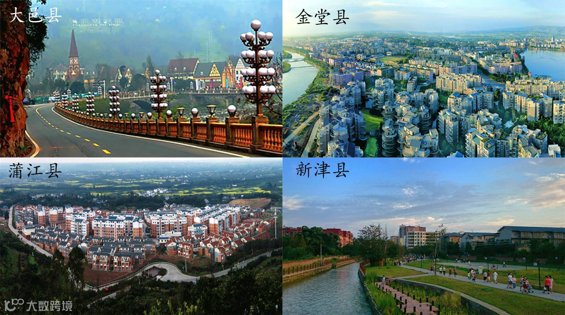 蒲江县、大邑县、新津县、金堂县