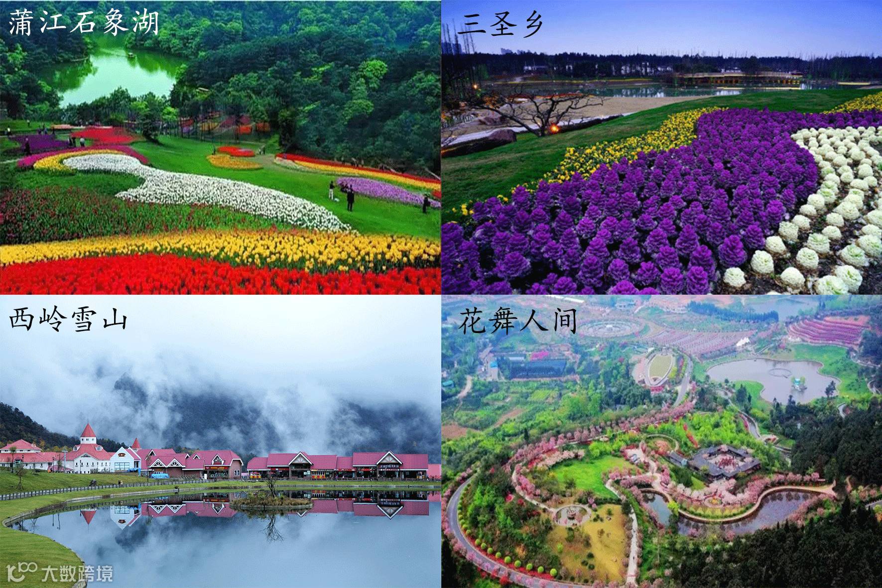 蒲江石象湖、新津花舞人间、三圣乡、西岭雪山...
