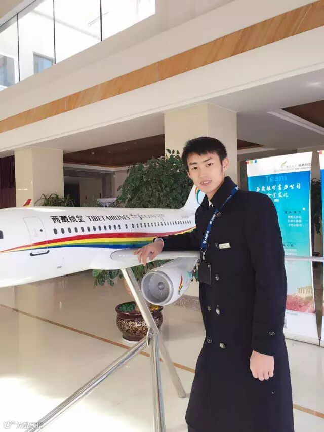 “2014年6月我成功面试上了西藏航空,成为第一批远赴西藏筹建地面服务部的先驱。在这里我把学校所学的充分学以致用,如鱼得水。所以在不到一年时间里,我就成功当选西藏航空地面服务领班。惊喜总是在最意外的时候出现,2016年12月31日,我接到公司聘任通知,正式成为西藏航空地面服务部主管。”