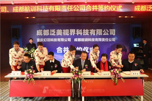 12月5日,成都泛美视界科技有限公司与重庆幻羽科技有限公司、成都航训科技有限责任公司合并签约仪式隆重举行,四川泛美教育投资集团领导悉数出席签约仪式,见证这一重要时刻。