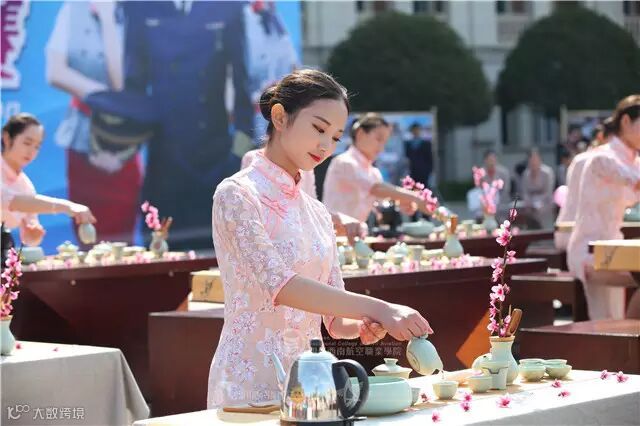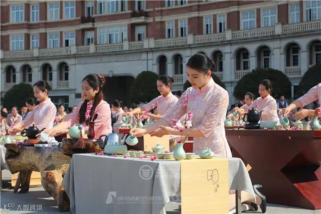 墨韵茶香,回味悠长。在太阳广场上,参赛学子一起共泡一壶茶,茶艺娴熟、人面桃花、茶香四溢,让人在阳光下也感到一丝幽静和凉意。
