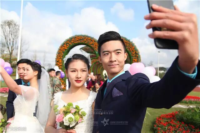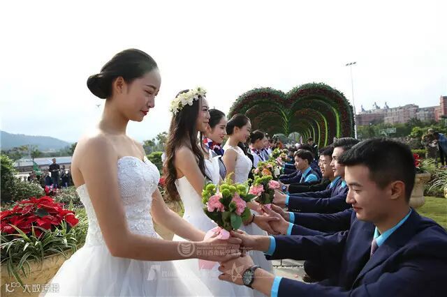 ,让99对大学生情侣提前过“双11”。其中一名穿着婚纱的女孩还现场向男友求婚,并邀请院长为他们的爱情见证。记者在现场看到,时间停止在“5:20”的真爱时钟、九颗心组成的真爱之门、九十九级阶梯的真爱大道、象征青春爱恋的青苹果红柿子树等,处处显现着浪漫与爱情。现场99对情侣,脸上都洋溢着幸福的笑容,女孩儿们身着白色婚纱,男生们穿上帅气西装,时而眼神交汇的甜蜜也让单身的观众表示羡慕嫉妒恨。