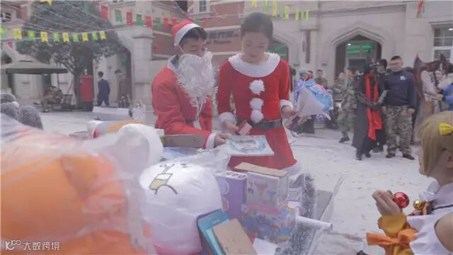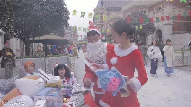 圣诞节也是二次元的狂欢节。路过乔治大街,硕大的lovelive海报十分吸引人的注意,动漫社的coser们将自己化身为动漫中的角色,在大雪中大跳宅舞。同学们在围观之余选一两件周边也是极好的。