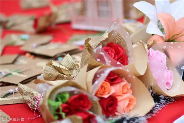圣诞节,一手拿苹果一手拿花算是标配。插花茶艺社用他们高超的技艺制作出一束束美丽的捧花,是整个创意街市的人气商品。