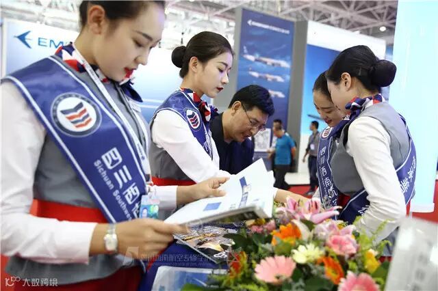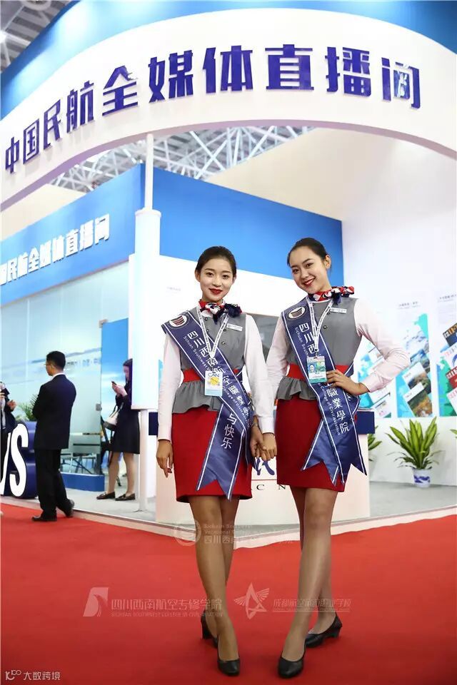 在此次珠海航展上中国民航报展区,西航4名空中乘务专业的准空姐作为志愿者和礼仪服务人员,为这一国际性专业航空航天盛会服务。