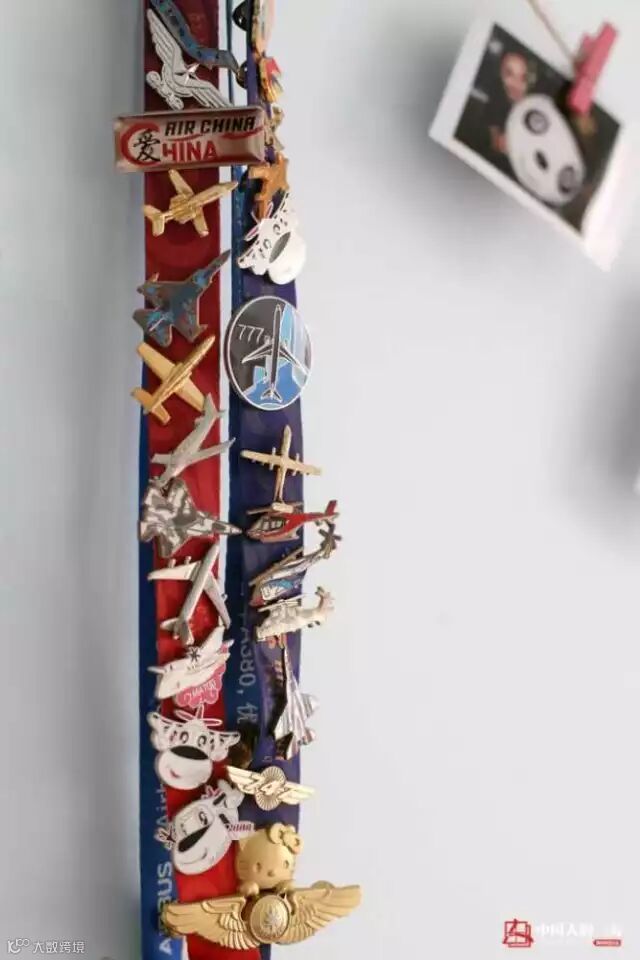 在刘苗苗位于深圳的家里,墙上挂着前几年去珠海航展时交换回来的胸章。