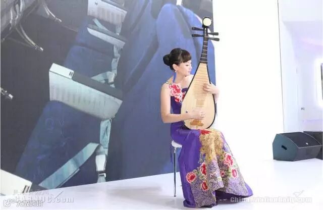 山航乘务员为观众献上一曲琵琶演奏《青花瓷》