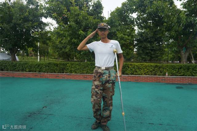 37度的高温,每天长达七个小时的训练,一个因腰间盘突出,压迫神经,导致右腿无力的学员,没有借口、没有退缩,没有放弃,他每天都在和病痛斗争,准时训练、高