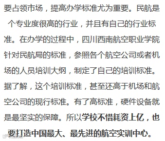 在西航 | 中国民航网:“家有梧桐树 招得凤凰来” ——记四川西南航空职业学院实训中心