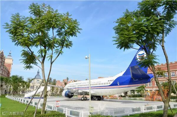 气势恢弘的凯旋门校门、超大弧形的教学楼、经典纯正的欧式建筑、摆放在校园里的波音飞机……