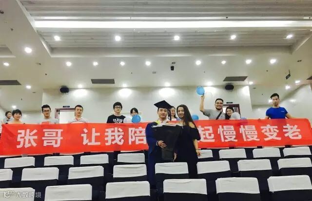 而毕业授位仪式上,一个女生想硕士生男友求婚,并拉出“张哥,让我陪你一起慢慢变老”的横幅, 是否也让李校长因学校男女比例问题,有同学抱怨找不到女朋友的事情松了一口气呢?