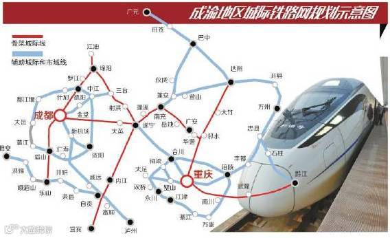 到 2020年,绵遂内宜铁路、达渝城际铁路、成都-新机场-自贡-泸州城际铁路成都-新机场段、自贡-泸州段、重庆市域铁路重庆-合川段、重庆-江津段、成蒲铁路等8个项目将陆续完成,去成都周边会越来越方便。