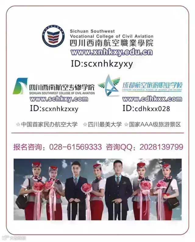 成都泛美航空旅游职业学校是经成都市教育局批准成立,与四川西南航空职业学院同属四川泛美教育集团,是西南航院附属中专。专门从事民航空中乘务、民航空中安全保卫、民航安全技术管理、飞机维修、无人机操作与维护等专业人才培养的全日制中等专业学校。