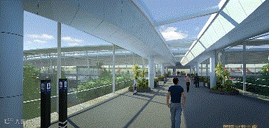 两座航站楼之间,采用连廊连接,解决国际国内空空中转问题。