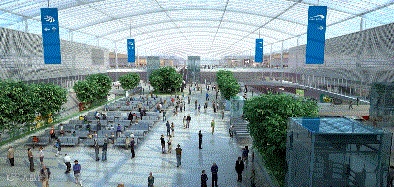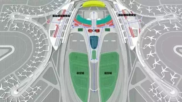 位于两座航站楼之间的区域,有GTC商业区、GTC中央大厅、GTC轨道交通站厅、轨道交通站台。