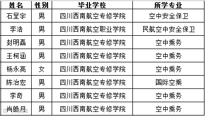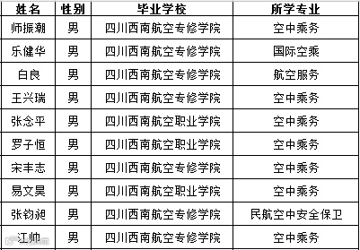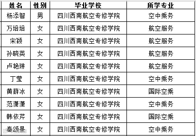 航空第三次在四川西南航空职业学院、四川西南航空专修学院乘务员