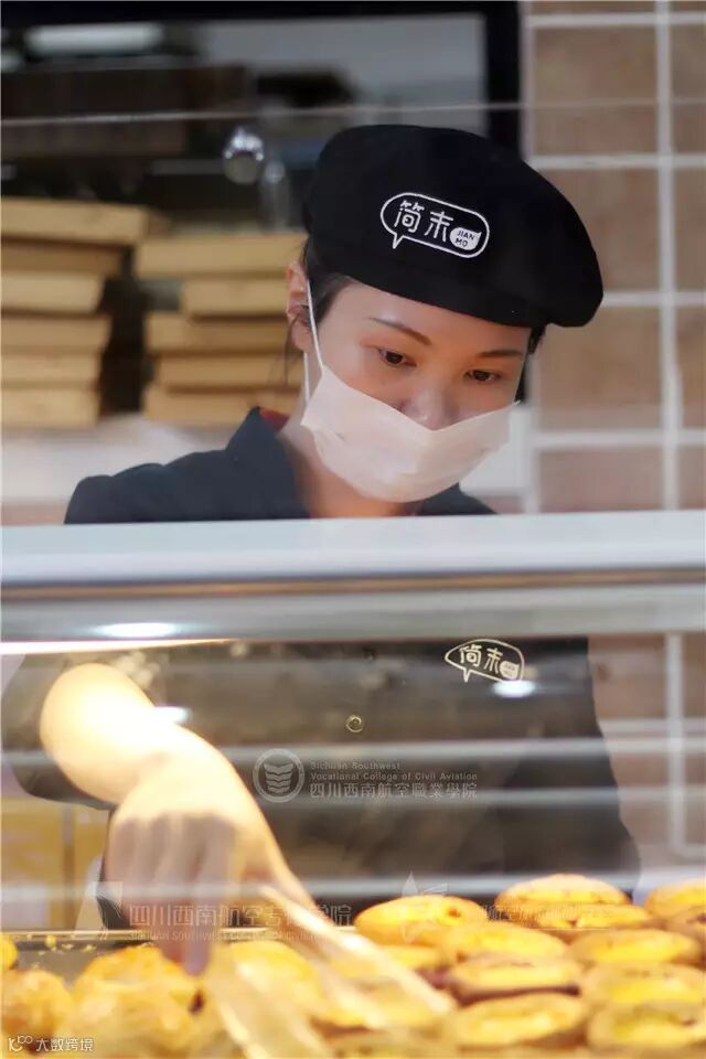 端着新鲜出炉的面包,小静回过头,干净的笑脸、黑色的制服、白皙的手臂盛着美味的面包,秀色可餐。小静是西航简末面包房的一位服务员,她很享受在西航的工作,她喜欢在大学工作的这种氛围。