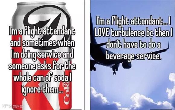 最近,空姐们使用了一款名为“私语(Whisper)”的匿名自白app,展现出了她们在飞行过程中的真实想法,她们讨厌飞机上小孩的哭闹:“我是空姐,相信我,我和普通人一样讨厌哭闹的小孩。”