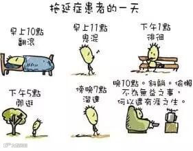临床表现:精神萎靡,整天除了吃饭睡觉煲剧打游戏,其他都没心思做。什么事都会拖到不得不做的那一刻才开始做。