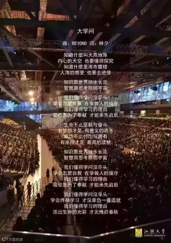 汕头大学校歌《大学问》由李嘉诚先生买下《光辉岁月》的版权,