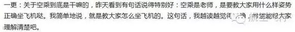 但还是不得不说后来蜂拥而至的空乘中,有一部分人的回答真的让我涨姿势了,在他们的眼里,原来空乘主要不是服务乘客的,他们的作用是老师(摘自某位匿名用户的回答):
