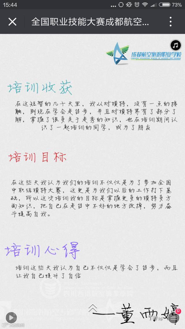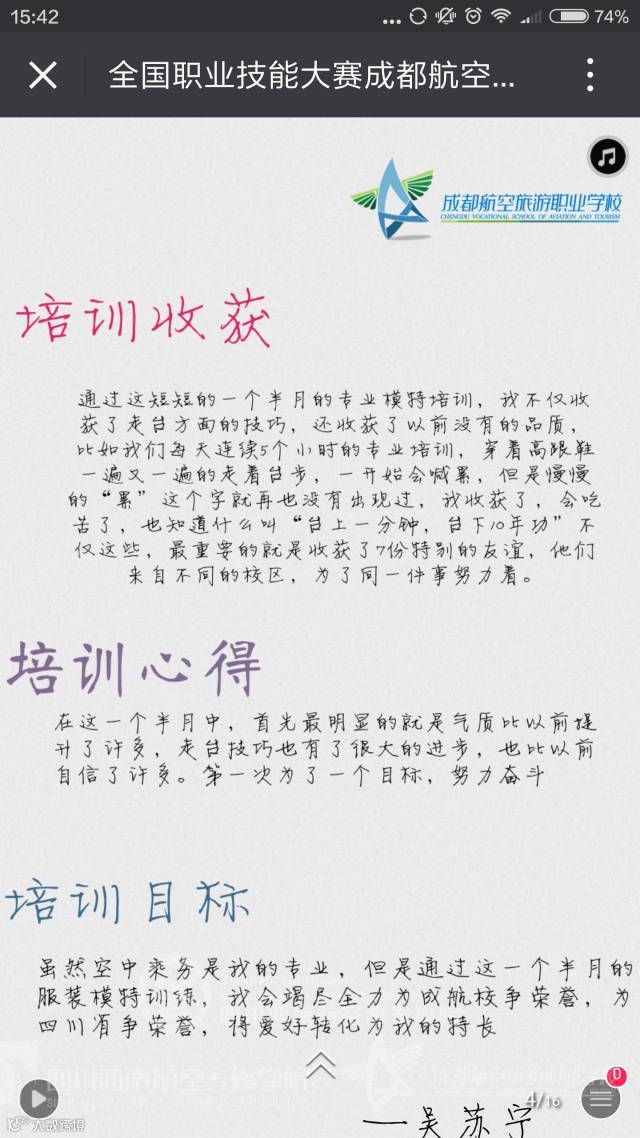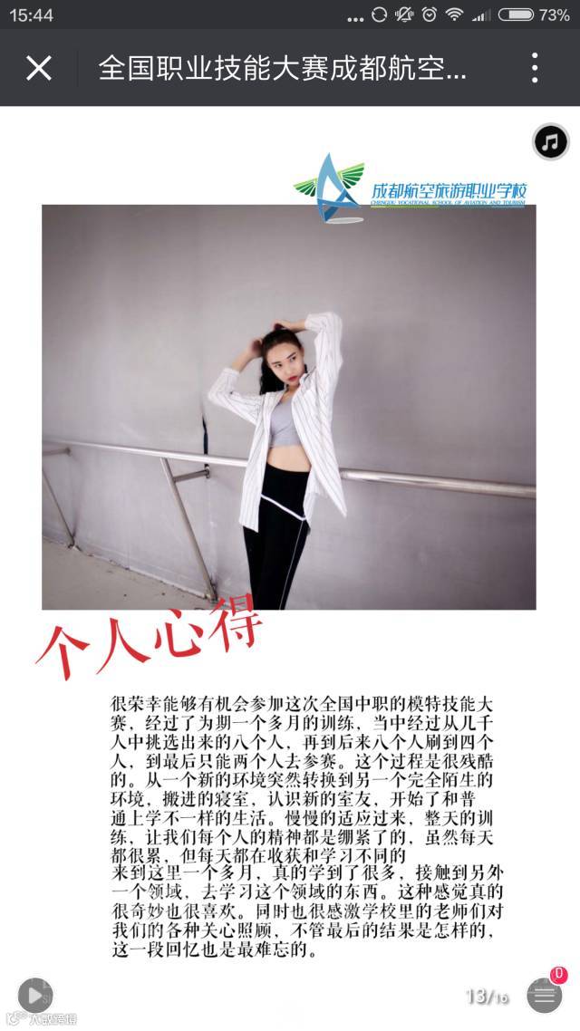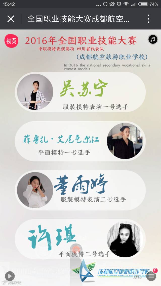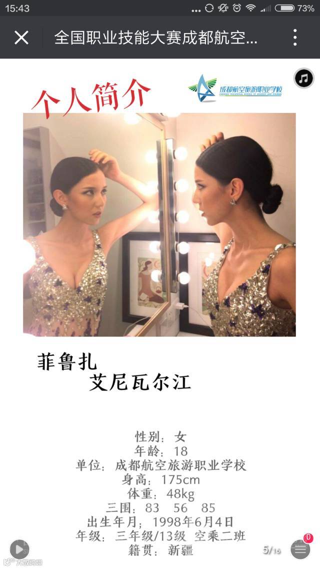 参加2016年全国职业院校技能大赛模特表演赛,来自全国26个省市的近百名中职学生汇聚一堂,她们在专业高端的赛场上比拼技能,在灯光璀璨的舞台上竞技才艺。经过层层竞技,代表四川省参赛的成都航空旅游职业学校学生菲鲁扎、吴苏宁分别获得银奖、铜奖。