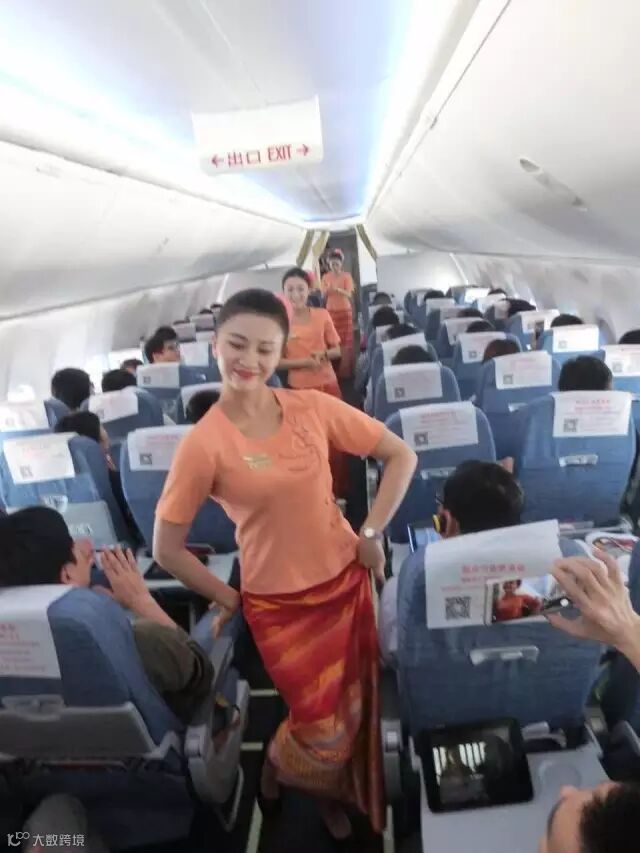 乘务员们一改往日端庄幽雅的形象,身着傣族服装、手捧圣水杯,向每一位登机的旅客点洒祝福的圣水,展现出活力、时尚、好客的民族特色。