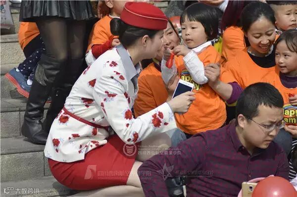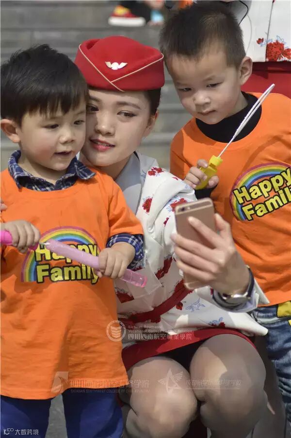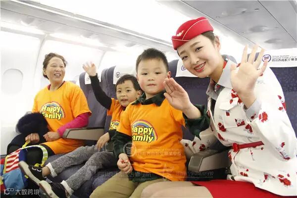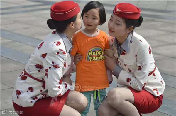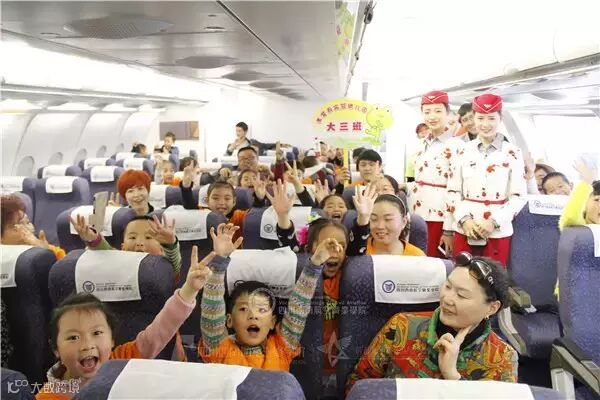 看到这些可爱的小朋友,空姐们顿时成了他们的粉丝,纷纷和他们合影留念!