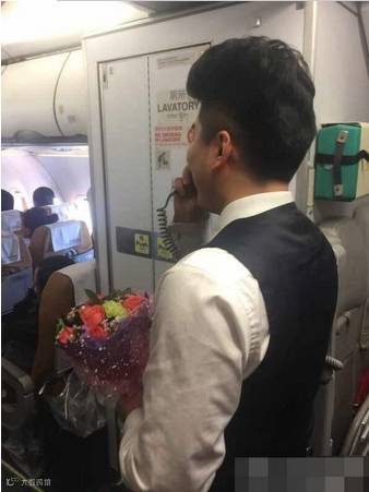 西藏航空一乘务员飞机上求婚,手捧鲜花,深情表白,最后在众人的见证下求婚成功,狂虐单身狗。